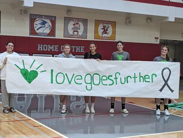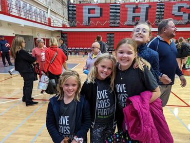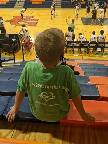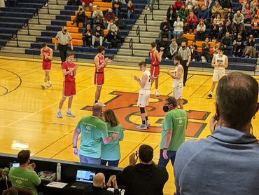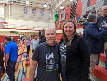 It was a wonderful night as Kendall's favorite fans were back in the stands for a very special game. Coach Peterson made it a memorable evening in every way including Kendall's lovegoesfurther team in a photo with both basketball teams, inviting Marty and Cindy to speak to the team, present the game ball to the refs, and pull the winning raffle ticket.