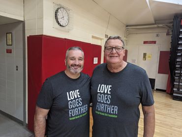 Thank you to basketball Coach Keith Peterson of Buffalo Grove High School and Coach Eric Millstone of Palatine High School for honoring Kendall as BG Hosted Kendall's alma mater, PHS, for a Two Teams One Cause benefit basketball game for BrainUp.